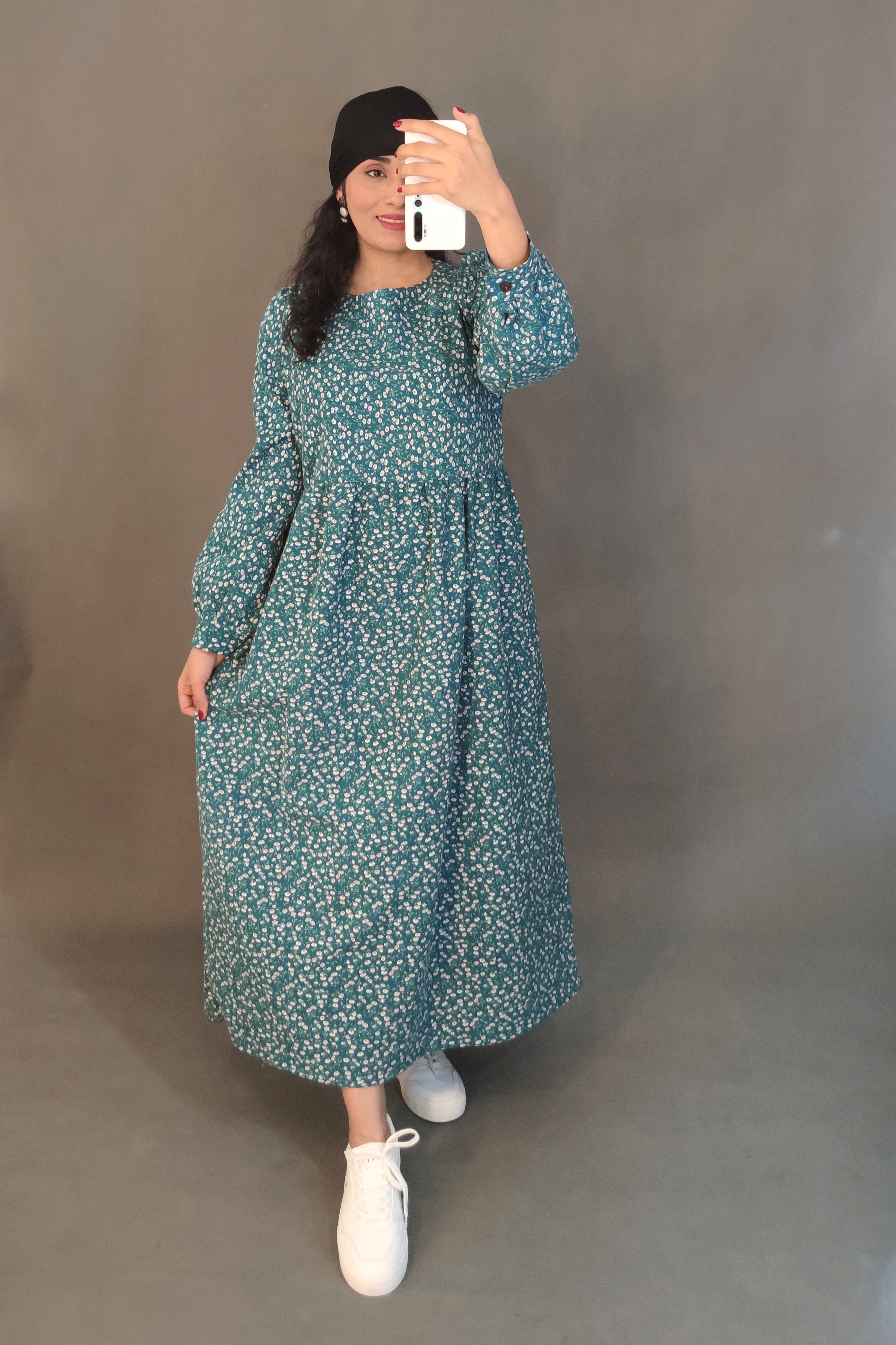 پیراهن بابونه از جنس لینن کرکی وارداتی است. این محصول در دو سایز تولید می شود. پشت لباس زیپ کوتاه دارد و همچنین کمربند لباس پارچه ای و به لباس وصل است. مچ ها دکمه دارد. این پیراهن بسیار سبک و راحت بوده و در عین حال بسیار شیک است.